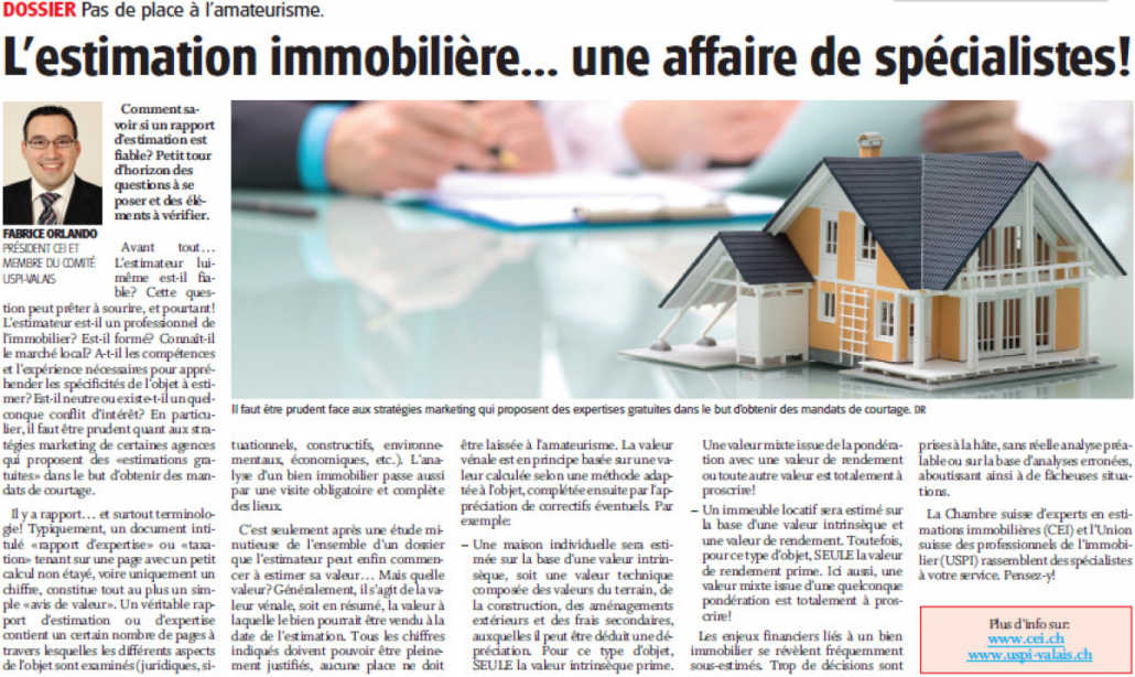 La Chambre suisse d’experts en estimations immobilières (CEI) et l’Union suisse des professionnels de l’immobilier (USPI) rassemblent des spécialistes à votre service. Pensez-y !